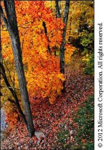 It was quiet in here except for the shish shish of my shoes as I walk gently in the ever-growing world of color about me. Overhead, the deep blue that only an autumn sky can display makes a bold and bright background to the colorful garments on the trees overhead: bright yellows, scarlets, oranges and reds, browns and greens. No matter where I look, the colors permeate my senses like a