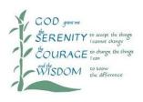 “God grant me the serenity to accept the things I cannot change; courage to change the things I can; and wisdom to know the difference. Living one day at a time; enjoying one moment at a time; accepting hardship as the pathway to peace; taking, as He did, this sinful world as it is, not as I would have it; trusting that He will make all things right if I surrender to His Will; that I may be reasonably happy in this life and supremely happy with Him forever in the next.”